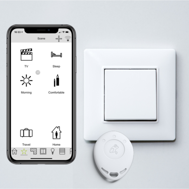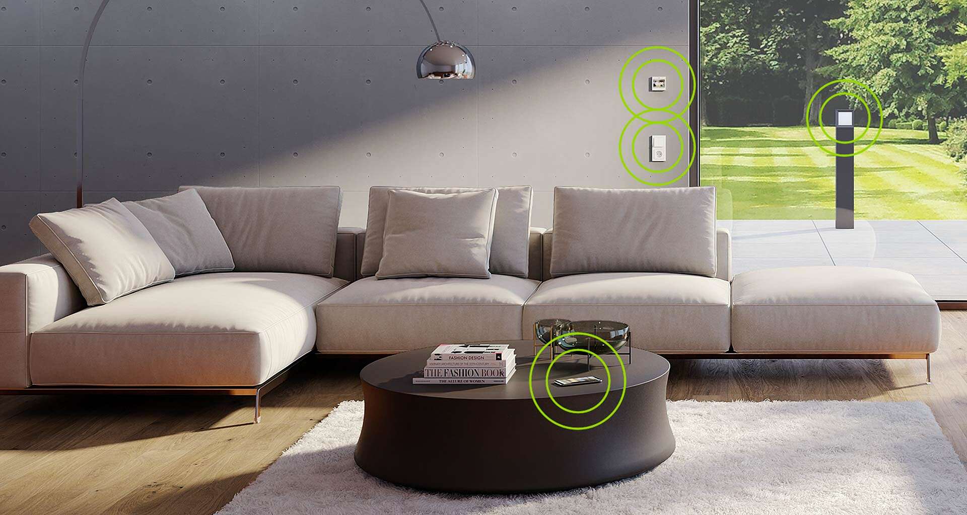 The usual light switches/buttons and lights of all manufacturers are compatible with frogblue. This gives the user full flexibility in choosing the desired switch program. With the frogKey one button controls the whole house in the frogblue smart home. Lights, blinds and doors. The transponder only transmits when it is in its project. Encrypted and timestamped, security assured.
