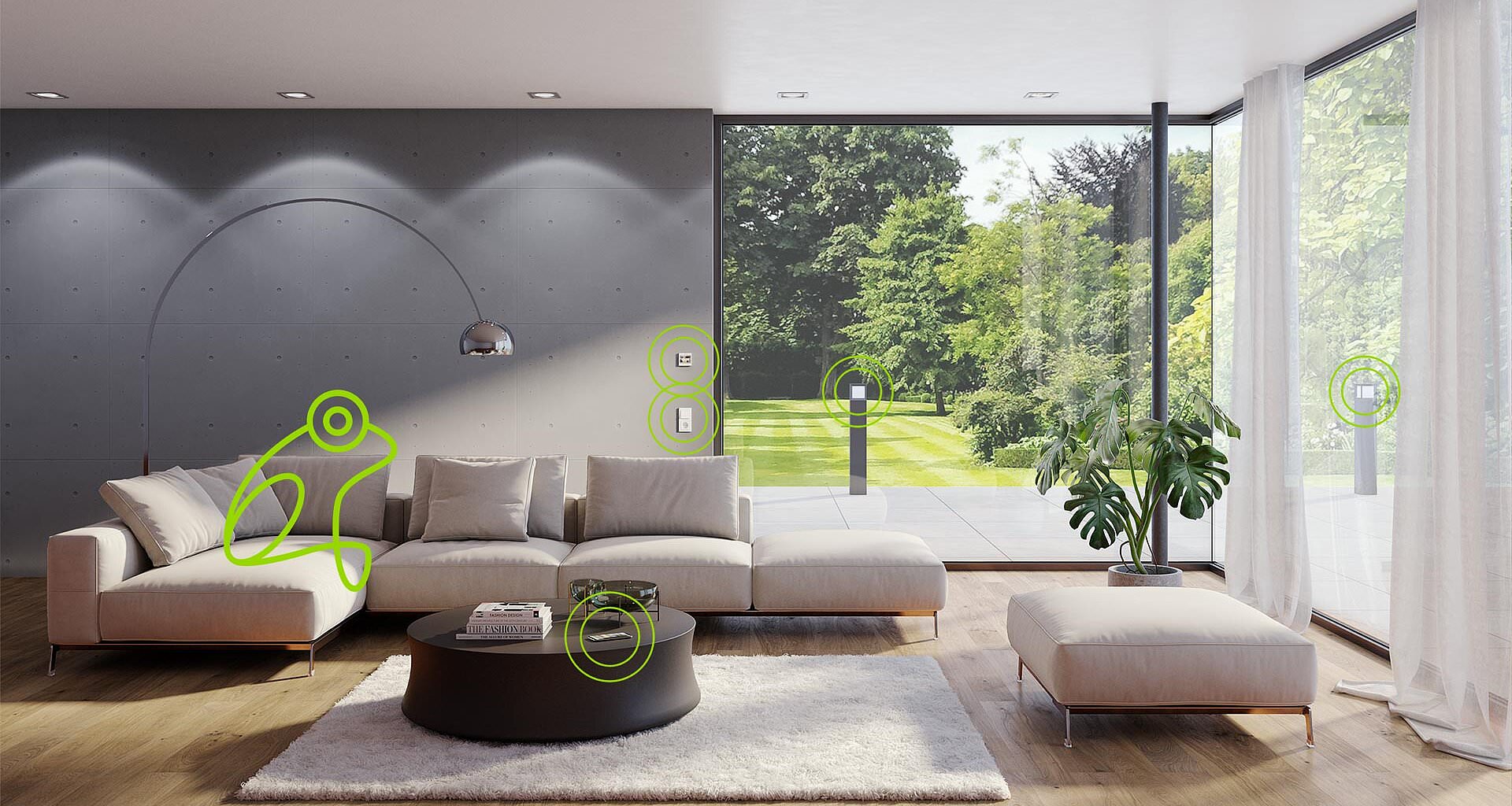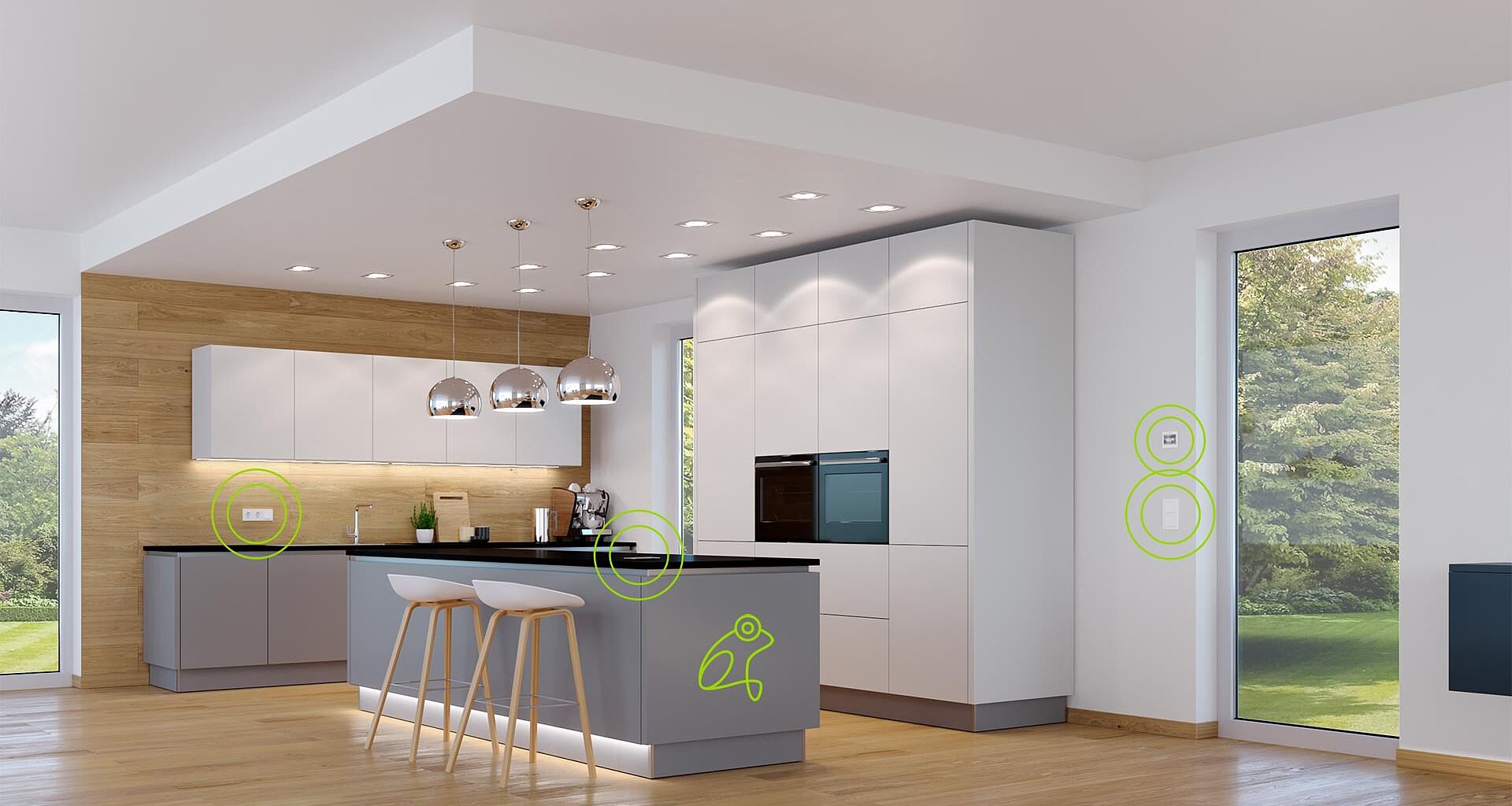 With minimal cable wiring and energy consumption, we connect lights, blinds, fans, windows, doors, heating systems, door intercom systems and all standard light switches wirelessly. Our major strengths lie in the reliability and security of a system that has been tried and tested for years, and which can still be flexibly adapted to users’ requirements even after installation by means of a configuration program. Frogblue is perfect for renovations and reduces the costs for new buildings. Positive energy-saving and a minimum number of cables to be laid results in a sustainable, environmentally friendly and cost saving solution.