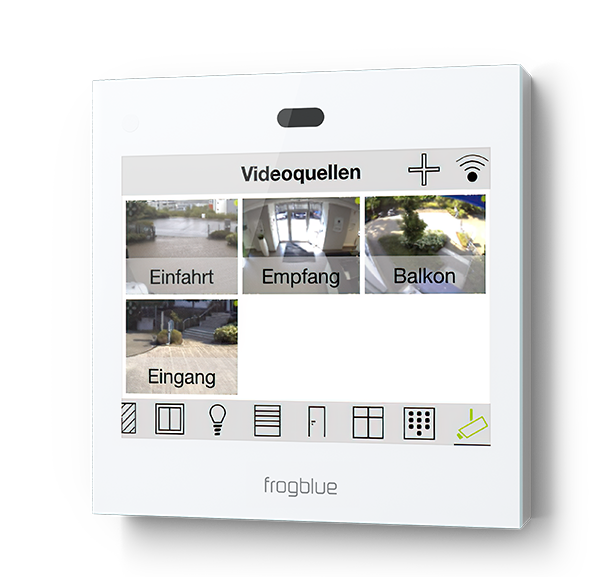 Wenn es an der Tür klingelt oder ein Bewegungsmelder im Garten eine Bewegung detektiert, wird im frogDisplay das entsprechende Kamerabild angezeigt. Zeitgleich sendet Ihnen das frogDisplay eine Benachrichtigung per E-Mail oder Anruf. So sind Sie immer und überall über die Vorkommnisse in Ihrem Haus informiert.
