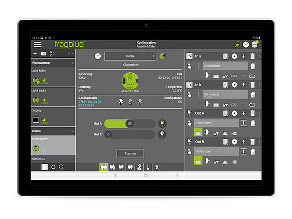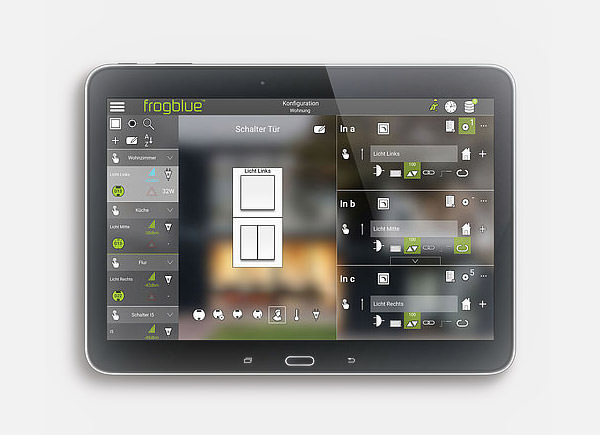 This way customer specific user interfaces for PC or Tablet can be easily realized. The frogLink is also used to connect to voice controls like Alexa etc.